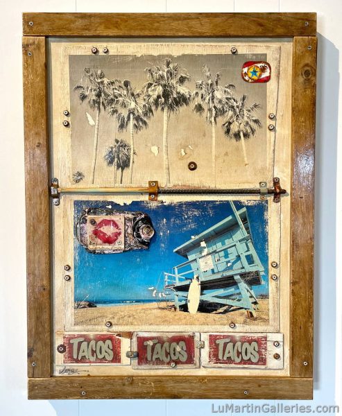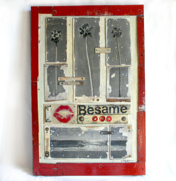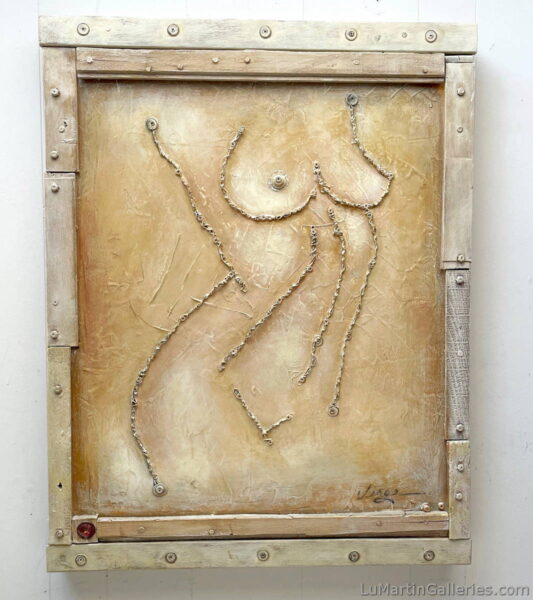 Jennifer's training comes from a combination of studying under other established artists and more predominantly, self taught experimentation. She draws inspiration from an extensive list of accomplished artists, such as: Frida Kahlo, Lourenco Didier, Joanne Corno, Andy Warhol and Banksy. Jennifer's passion for art lead her to Los Angeles to pursue her career as an artist, where she developed her own signature style of repurposing and assembling found objects and materials such as old doors, wood, metal, hardware, locks, or any interesting found object with an aged patina. The parts are assembled artistically, with an aged, often industrial feel, using bolts, screws and rusty nails. This then becomes a substrate on which she inscribes a message of inspiration.