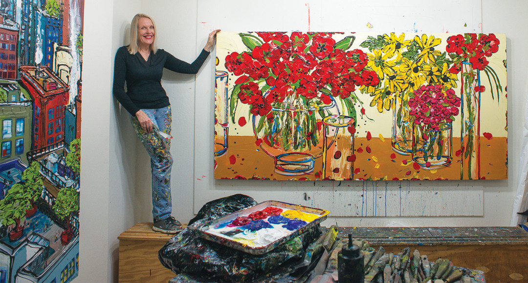 A professional painter for nearly three decades, Sue Averell’s vibrant and whimsical paintings are renowned for their dramatic color, texture and expressive, flowing lines.
